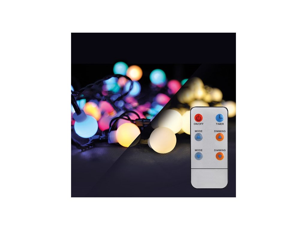 LED 2v1 zunanja veriga za božično drevo, daljinski upravljalnik, 100xLED, RGB+W, 10m+5m, 8 funkcij, IP44, 1+1 GRATIS! [1V08-RGB]