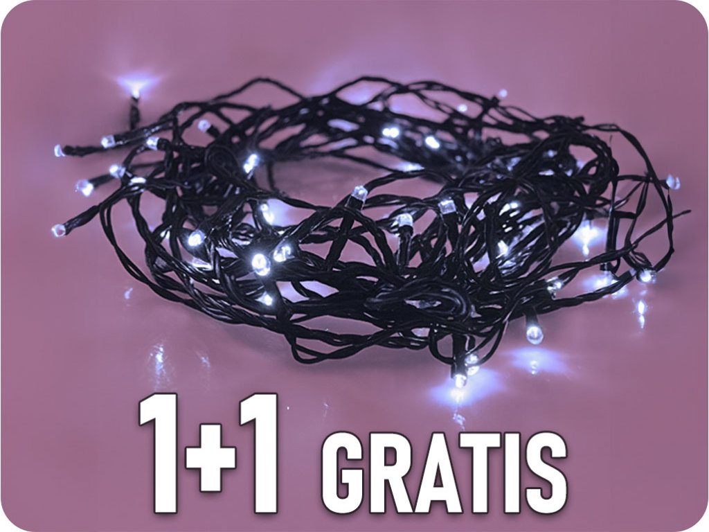 LED zunanja božična veriga, 200 LED, 20 m, 5 m vodila, 8 funkcij, časovnik, IP44, hladno bela, 1+1 GRATIS! [1V102-W]
