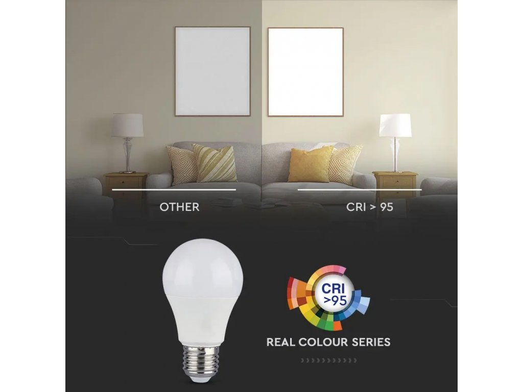 LED žarnica z 200° kotom snopa in 806lm svetlobnega toka. 10 W moči je enako 60 W. Dimenzije: Ø60x120 mm.
