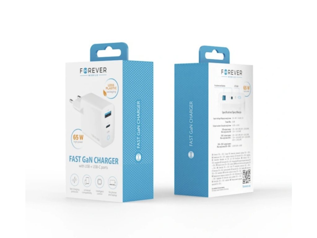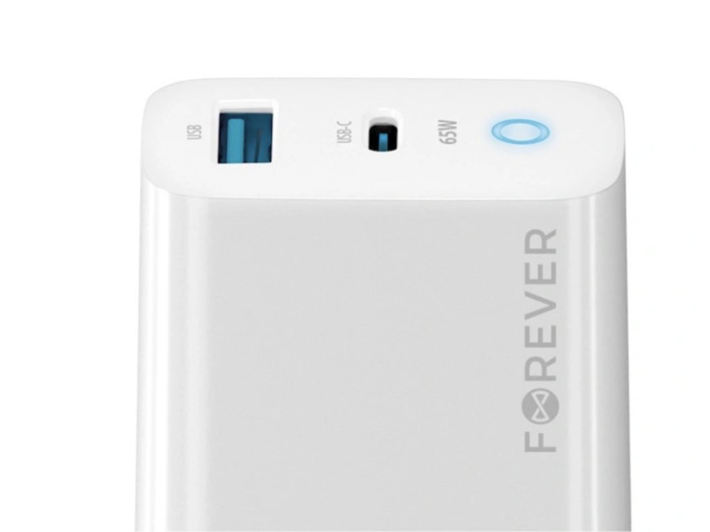 FOREVER POLNILNI ADAPTER GAN, PD, QC POLNILEC, 1X USB-C, 1X USB, 65W, BEL [GSM171397]