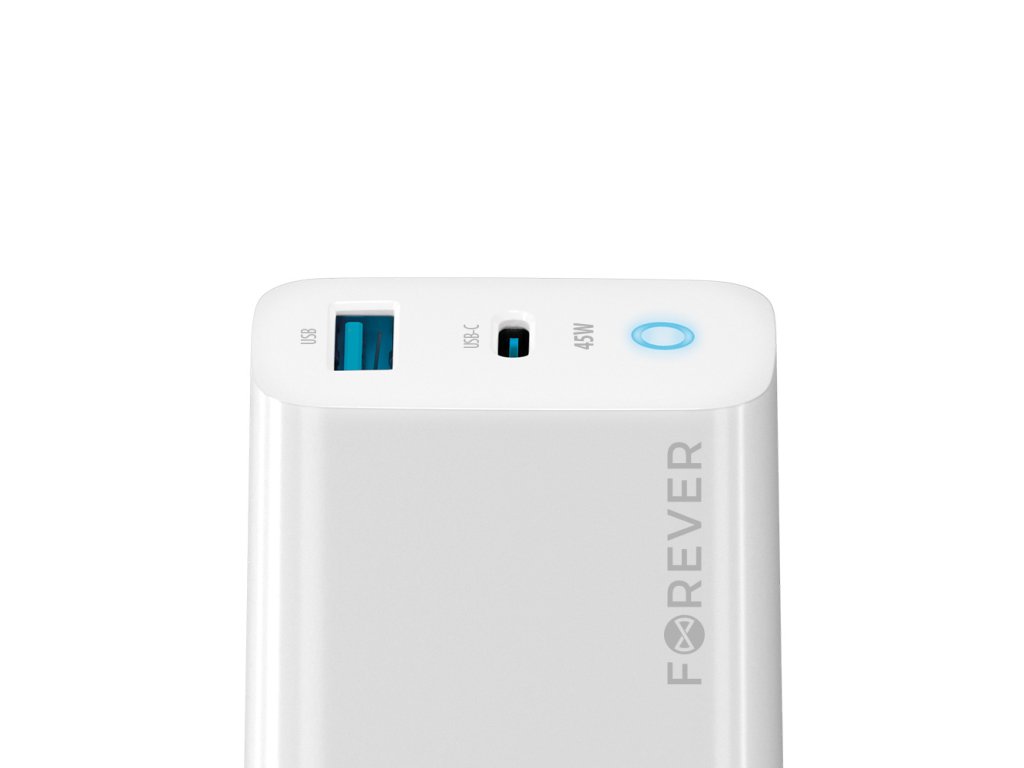 GaN PD QC polnilnik adapter 1x USB-C, 1x USB, 45W, bel [GSM171396]