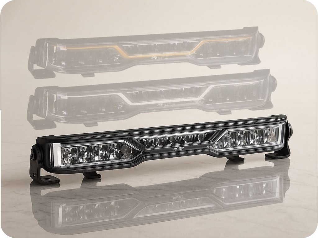 - 3 v 1: dolga luč, pozicijska in opozorilna luč (enojni ali dvojni utrip) + pozdravni učinek
