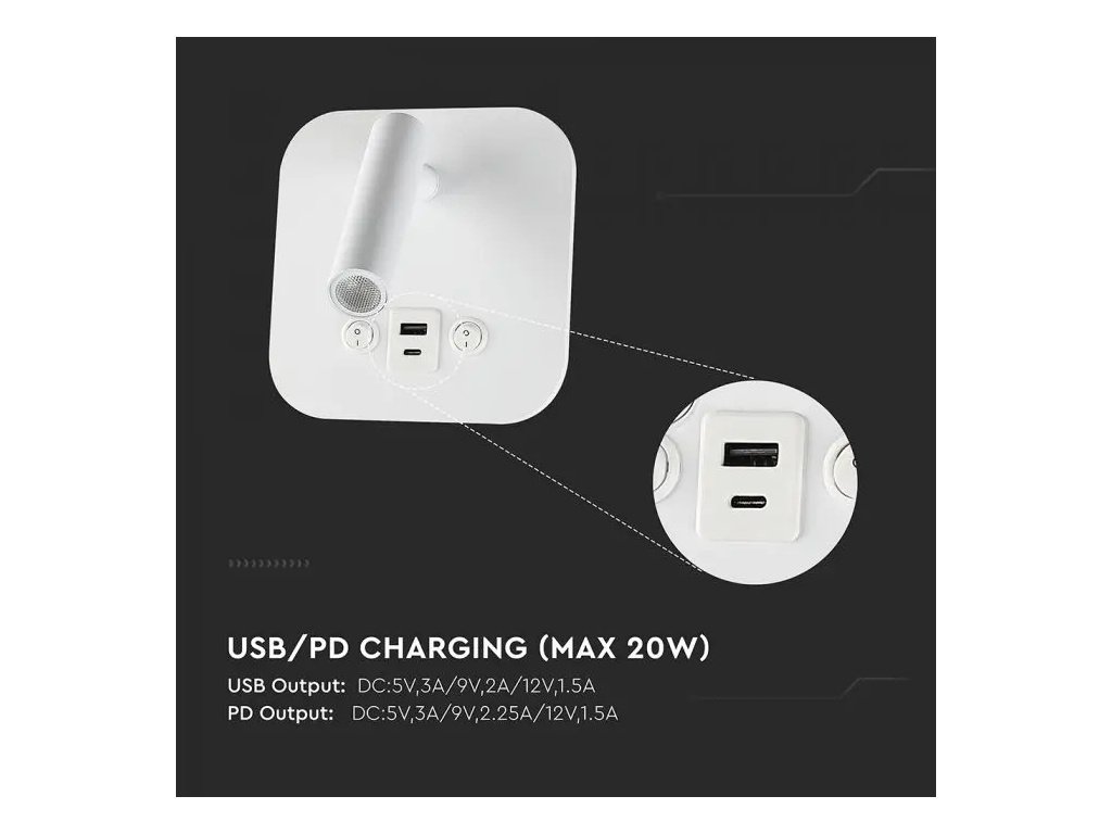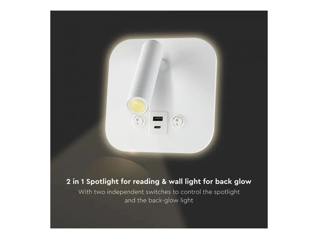 - 2 v 1 reflektor za branje in stenska svetilka za osvetlitev ozadja