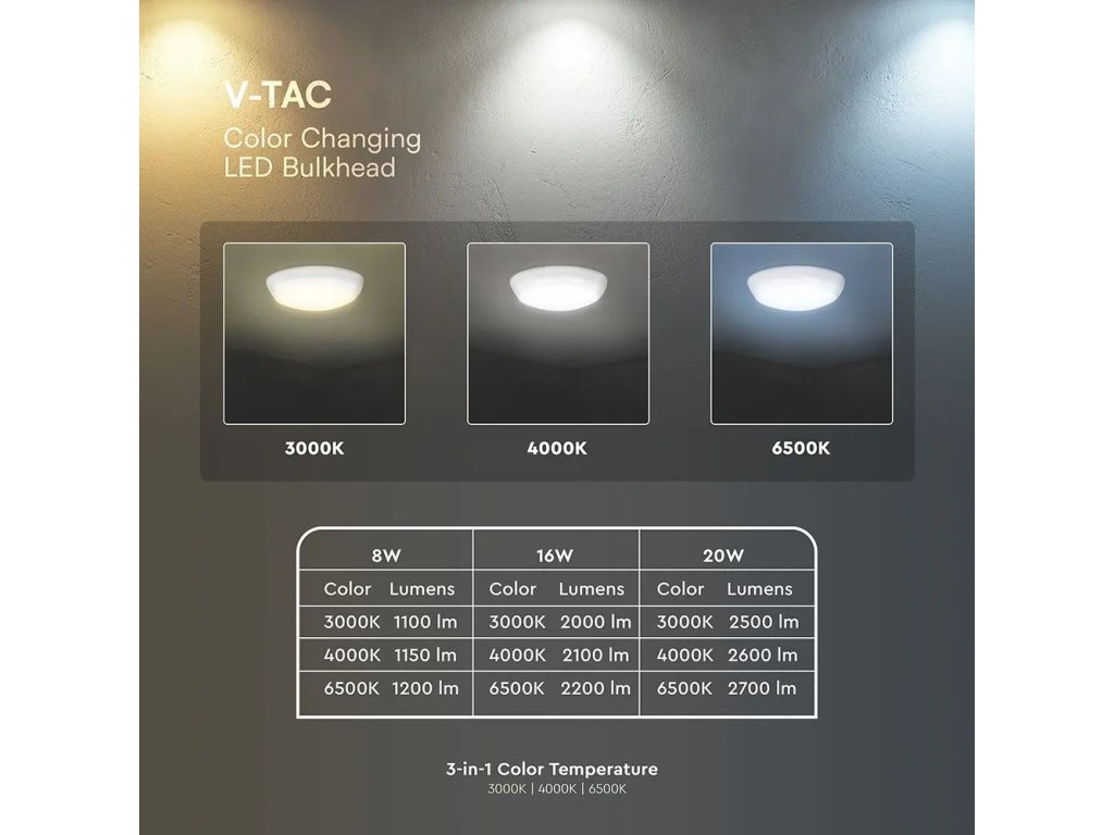 | Svetla barva: | 3v1 ( 3000K + 4000K + 6500K) |