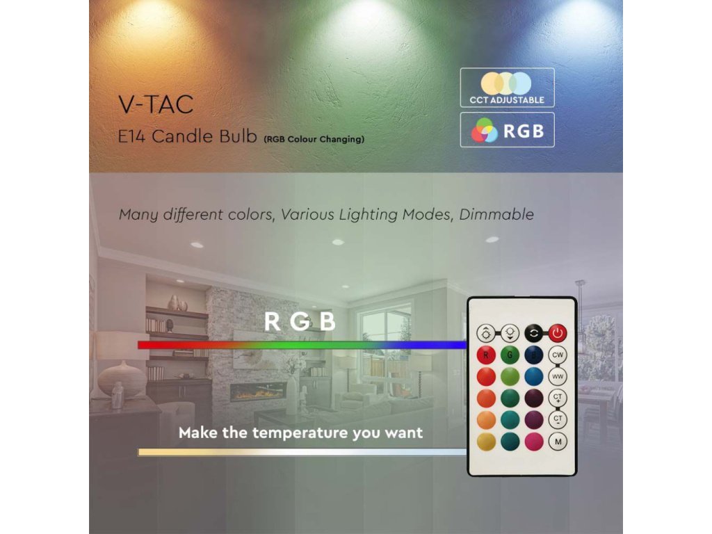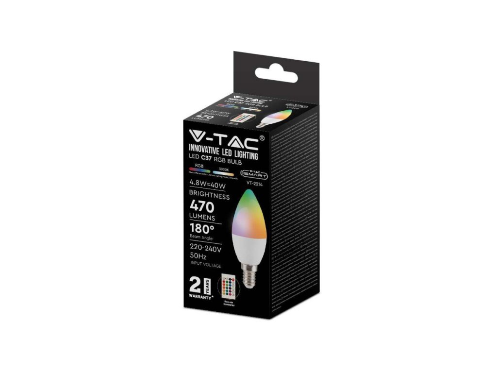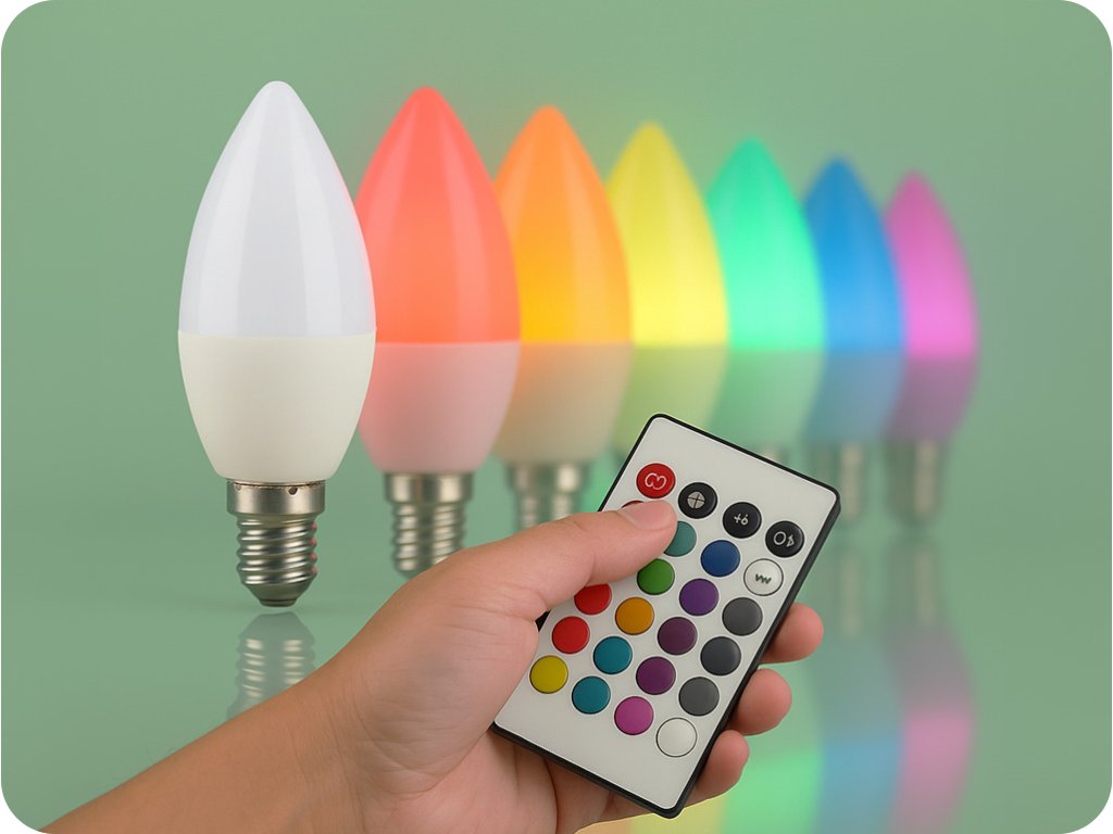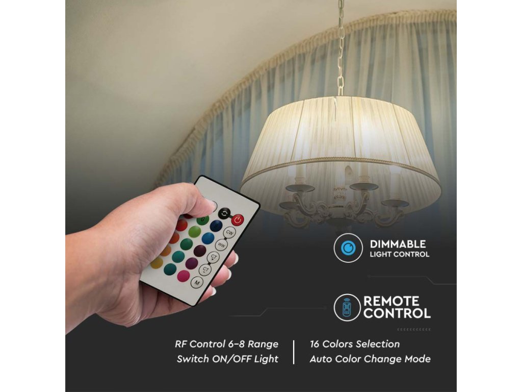 LED žarnica E14 RGB+4000K, 4,8 W, 470 lm, RF upravljanje