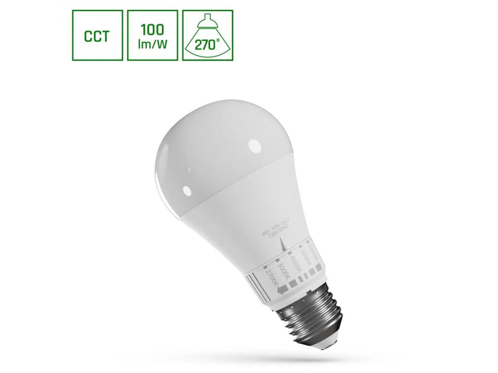 LED žarnica E27, 10W, 1100 lm, 5CCT 2700/3000/4000/5000/6500K [WOJ+14715]