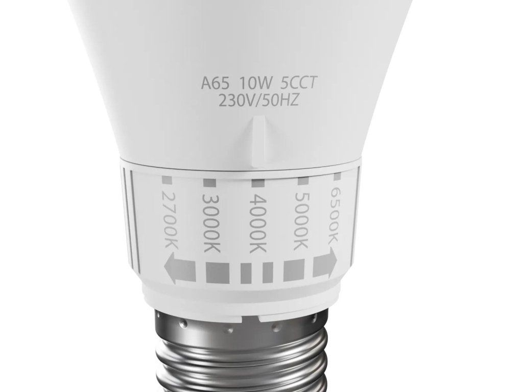 - Možnost spreminjanja barve svetlobe: CCT - do 5 barv svetlobe v eni žarnici