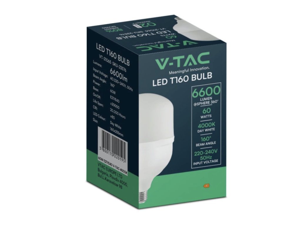 LED ŽARNICA E27 T160, 60W, 6600LM, 160°, IP20
