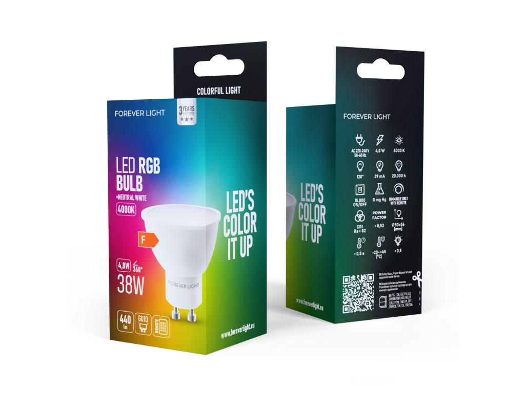 LED žarnica GU10 RGB+W, 4,8 W, 440 lm z daljinskim upravljalnikom [RTV9000082]
