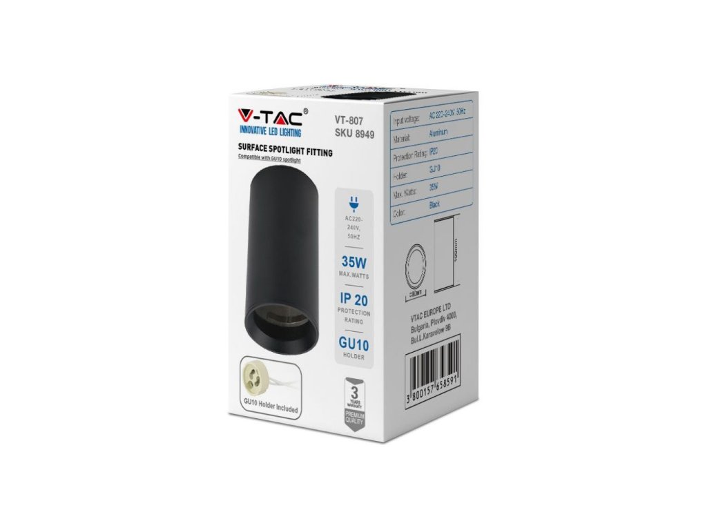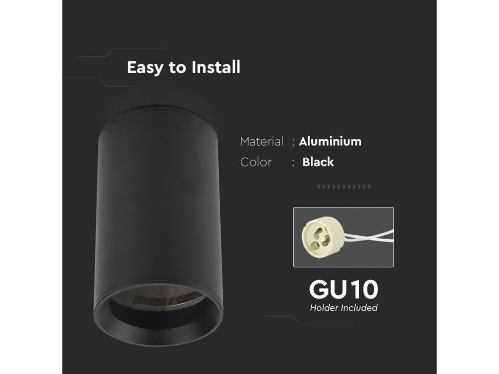 Nadogradna stropna svetilka GU10, okrogla, črna