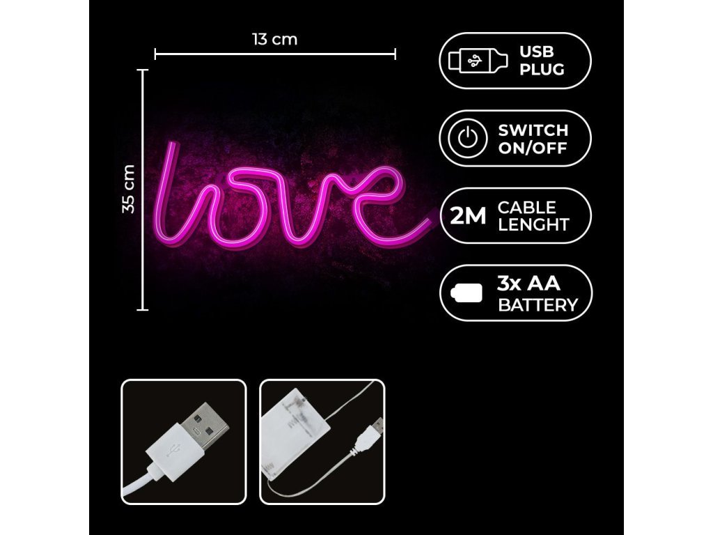 Neonska LED dekoracija Forever Light - LOVE, roza, 3xAA/USB [RTV100208]