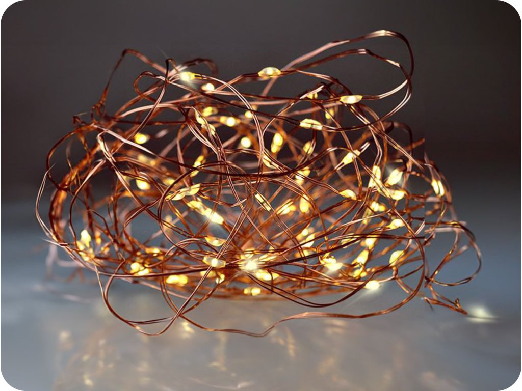 Solight bakrena božična verižica, 100x mini LED, 10m, 3xAA, topla luč [1V54-WW]