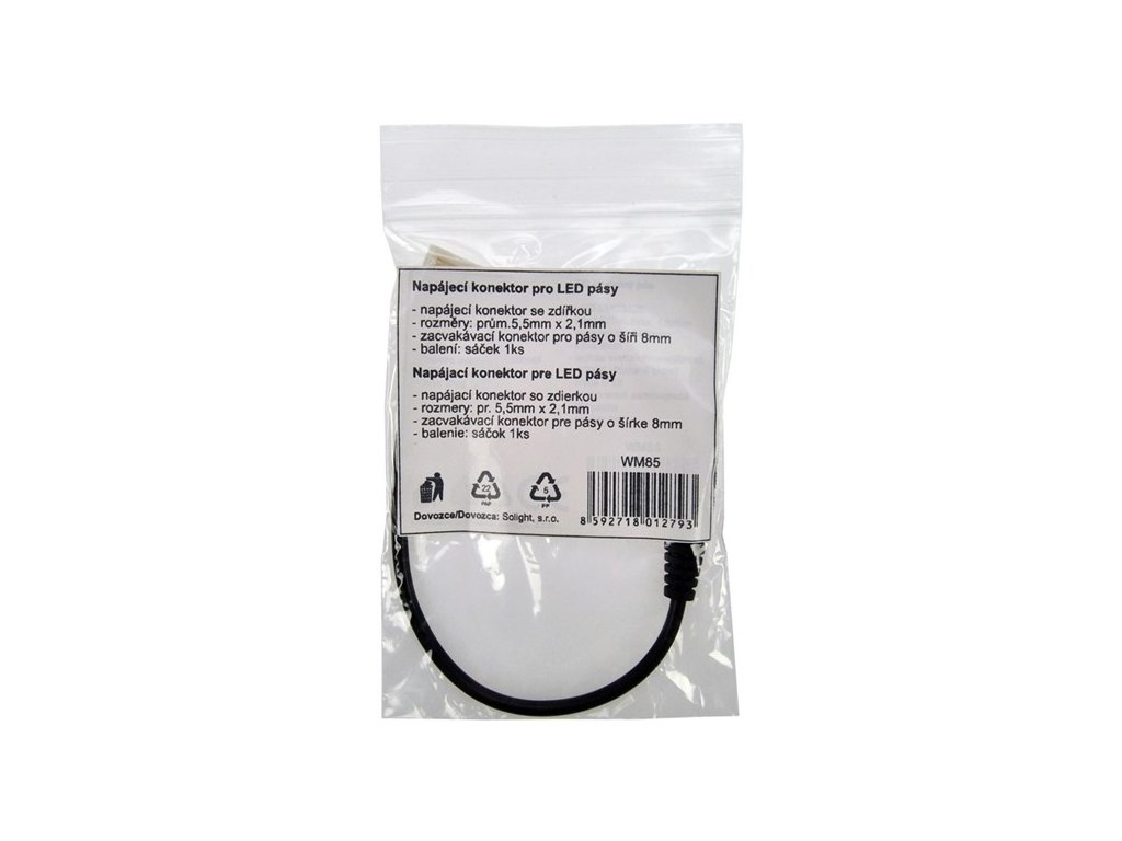 Solight napajalni konektor za LED trakove, 5,5 mm vtičnica - 8 mm snap konektor [WM85]