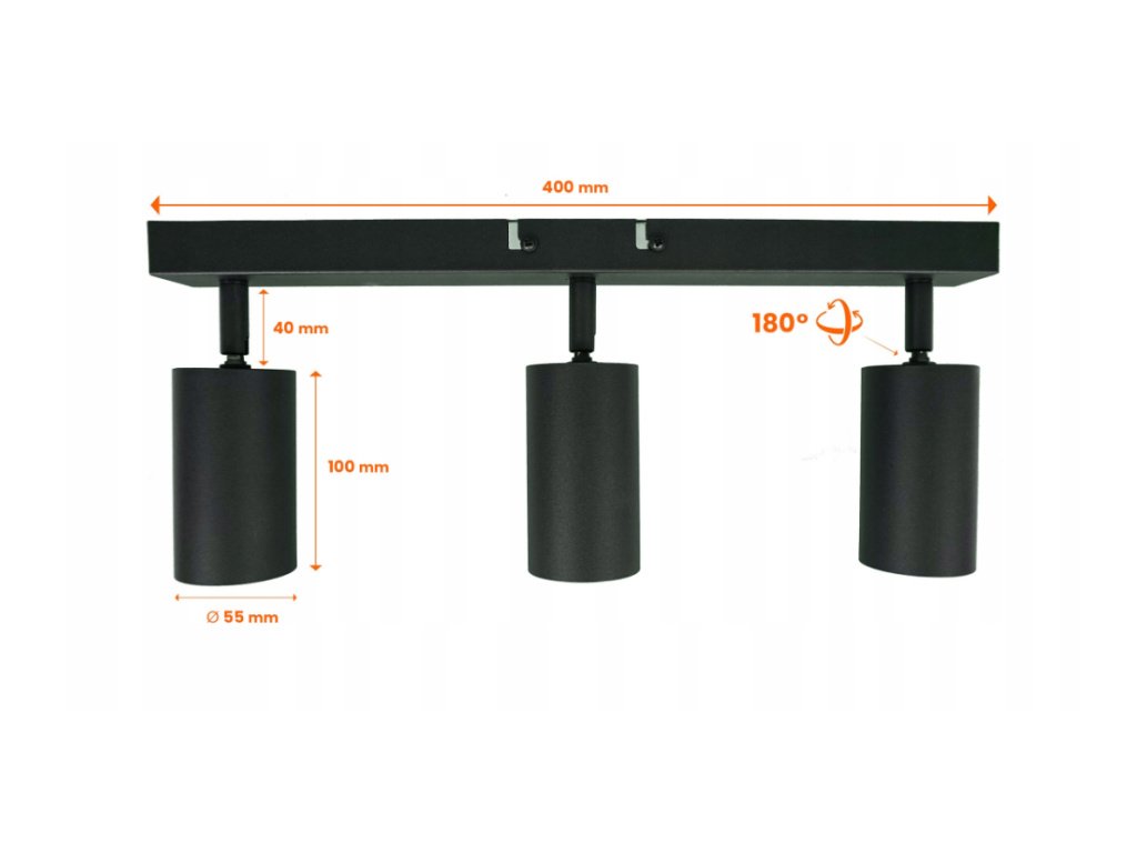 STROPNA NOTRANJA SVETILKA ZA 3 ŽARNICE GU10, ČRNA [MC0340]